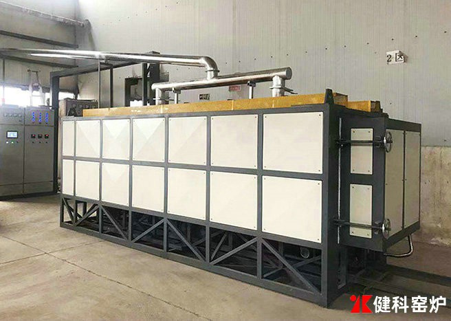 由于窯門經(jīng)常移動,所以窯門的砌筑為兩層,內(nèi)層為高強(qiáng)度隔熱磚,外層為隔熱層,采用耐火纖維氈貼于窯門金屬殼上。燒嘴安裝在窯墻上,視窯的高度設(shè)一排或兩排。以窯車臺面為窯底并和窯頂、窯墻構(gòu)成窯的燒成空間,窯車襯磚中 心留設(shè)主煙道,與地下煙道相接。窯的一端(或兩端)設(shè)有窯門,窯門可單獨(dú)設(shè)置也可砌筑在窯車端部。窯車兩側(cè)裙板插入窯墻砂封槽內(nèi),窯車與窯車之間,窯車與端墻、窯門之間設(shè)有曲封槽,耐火纖維擠緊,起密封作用。在窯墻砂封槽下部留有許多通風(fēng)孔,有利于窯車底部散熱,延長了窯車的使用壽命。
